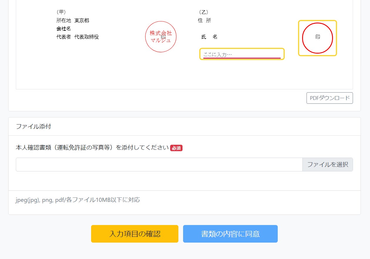 人材派遣やパート・アルバイトなどの雇用契約シーンで、運転免許証などの本人確認書類を確認しなければならないことが多いことから、多数のお客様からのご要望があり、契約締結時に相手方から本人確認書類の画像等を添付することができる機能を実装いたしました。