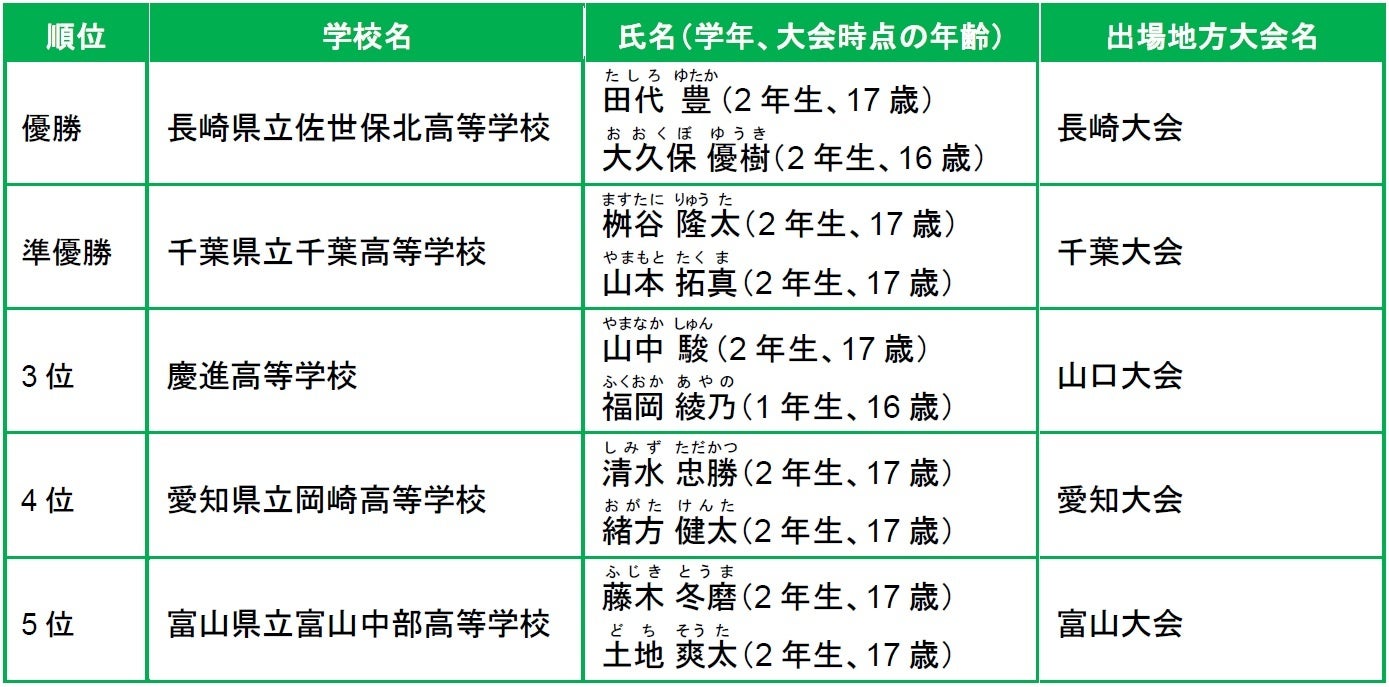 ・準優勝校は千葉大会代表の千葉県立千葉高等学校