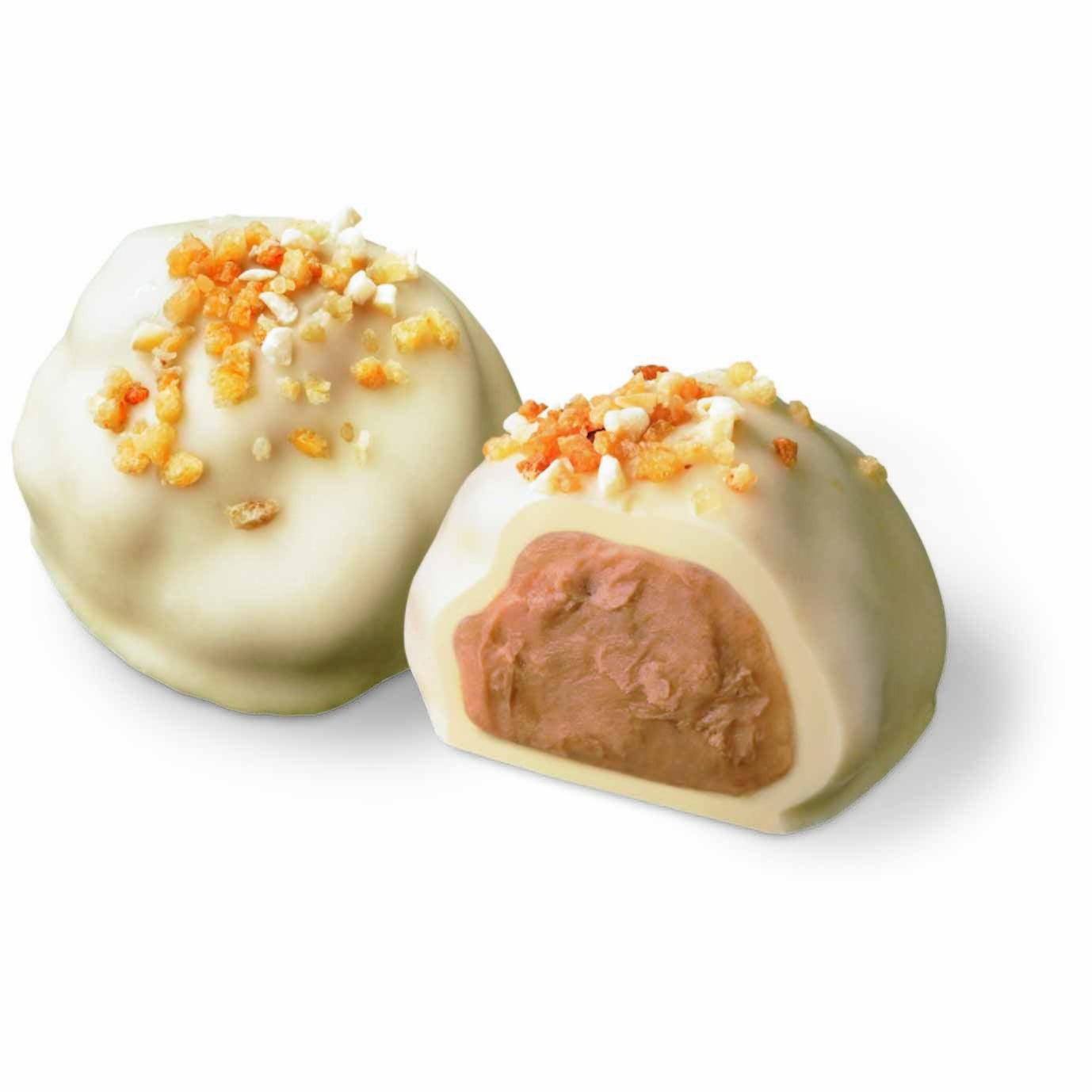 なめらかなヘーゼルナッツプラリネを、まろやかなホワイトチョコレートでコーティング。