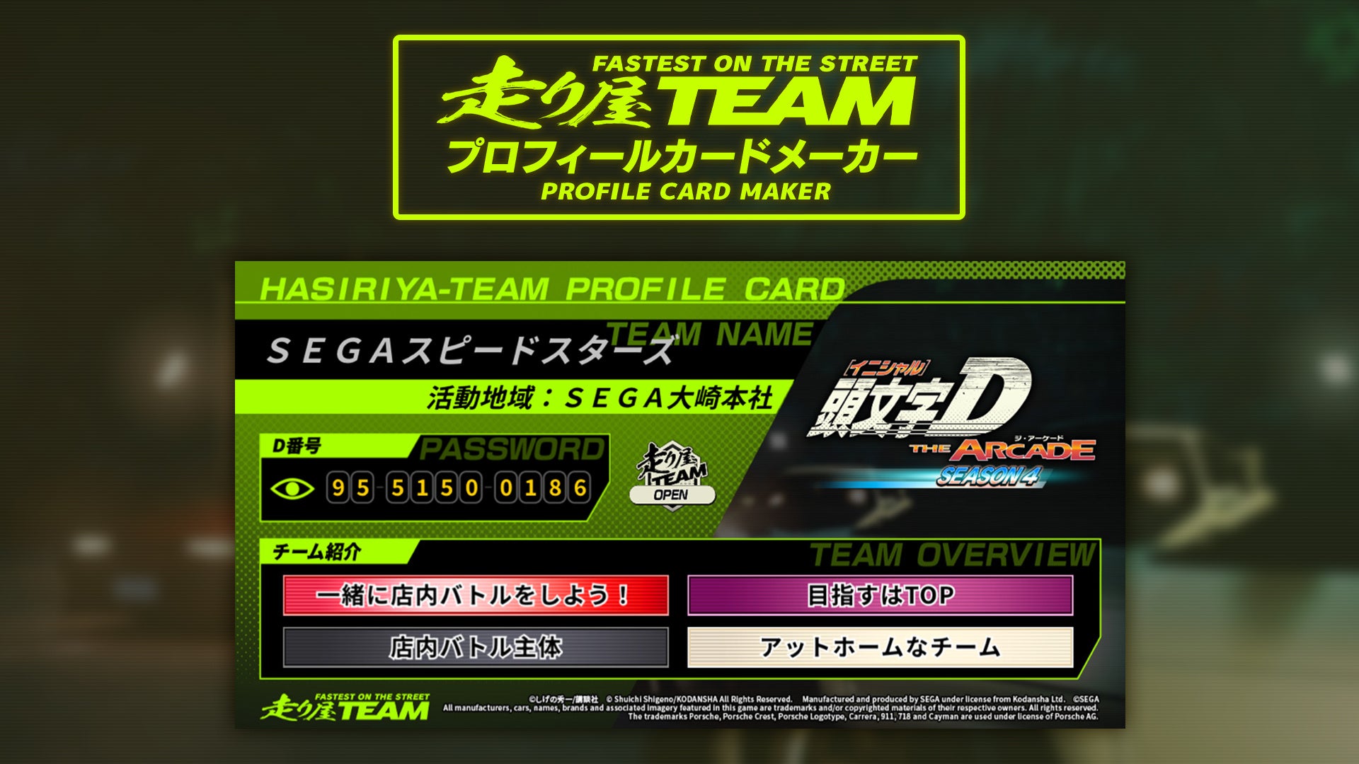 『頭文字D THE ARCADE』走り屋チームプロフィールカードメーカーでチーム機能をもっと楽しもう!