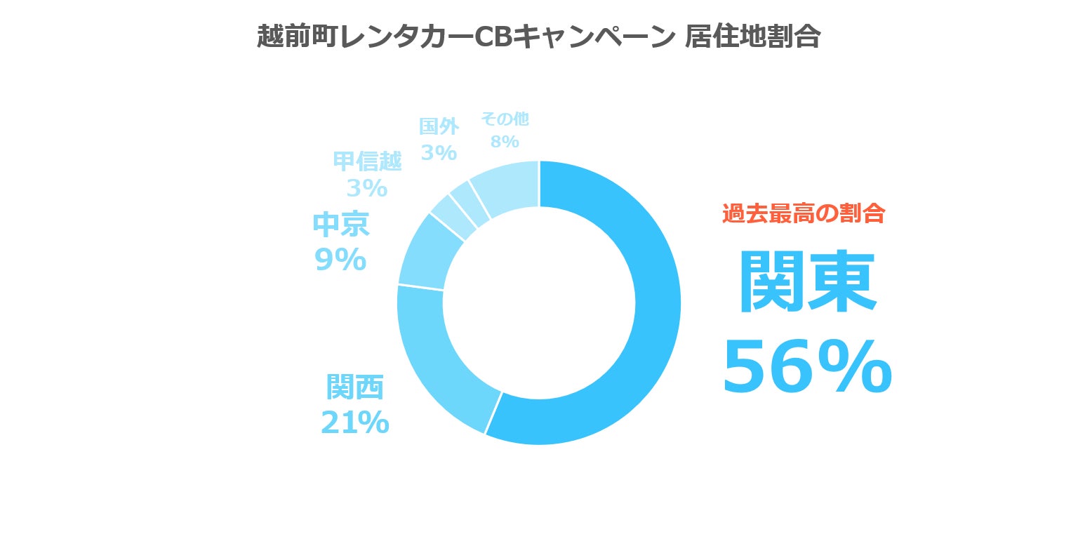 利用者の居住地属性は、本制度開始から関東の割合が最も高くなっていましたが、年々関東の割合が増加しており、2024年は過去最高の56%となり、北陸新幹線の福井開業の影響があったと考えられます。