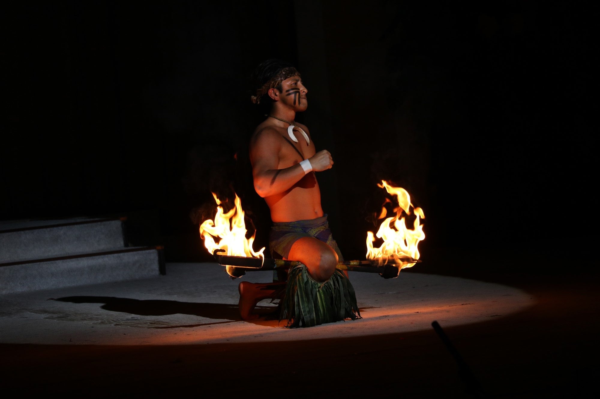 そんなファイヤーナイフダンスですが、体のすぐ側で火のついたナイフを自由自在に操り、火を怖がらないダンサーのパフォーマンスを見たお客様から、「本当は、熱くない特殊な炎を使用しているのでは?」「炎や体に何か仕掛けがあるの?」という質問の声も多く聞かれます。