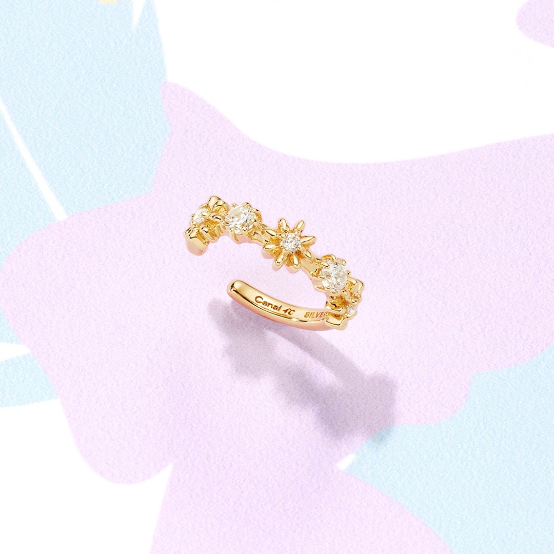 「真実の愛」や「信頼」という花言葉を持つマーガレット。純真に咲き誇る真っ白な花びらを、繊細に揺れてきらめくストーンで表現しました。イエローゴールドの地金で明るい印象に仕上げたネックレスは、春らしくピュアな輝ききらめくストーンで表現しました。イエローゴールドの地金で明るい印象に仕上げたネックレスは、春らしくピュアな輝きを放ち、胸元をまばゆく照らします。さらにイヤーカフやブレスレットは、花冠や花束をモチーフに、華やかながらも程よいサイズ感で付けやすさにもこだわったデザイン。マーガレットのピュアな表情を軽やかにまとって。