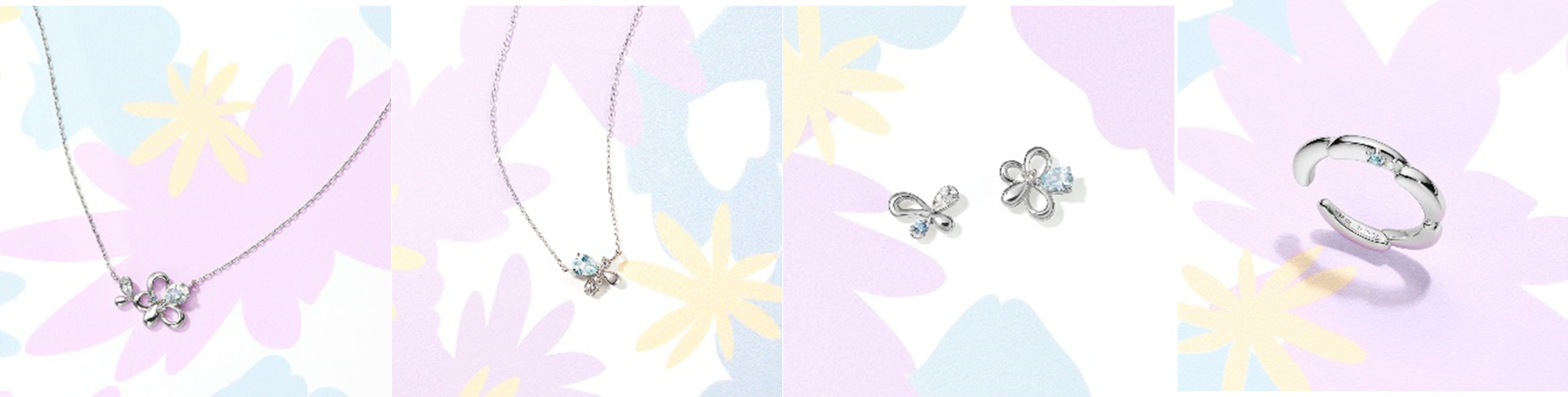 ピンクアメシストとピンクゴールドの地金でひらひらと花びらを揺らすスイートピーを表現したネックレスから、マーガレットの花束をイメージした可憐なピアス、3月の誕生石でもあるアクアマリンでブルーに染まるネモフィラを映したブレスレットまで、うららかな春を感じさせるジュエリーをラインナップ豊富にご用意しました。