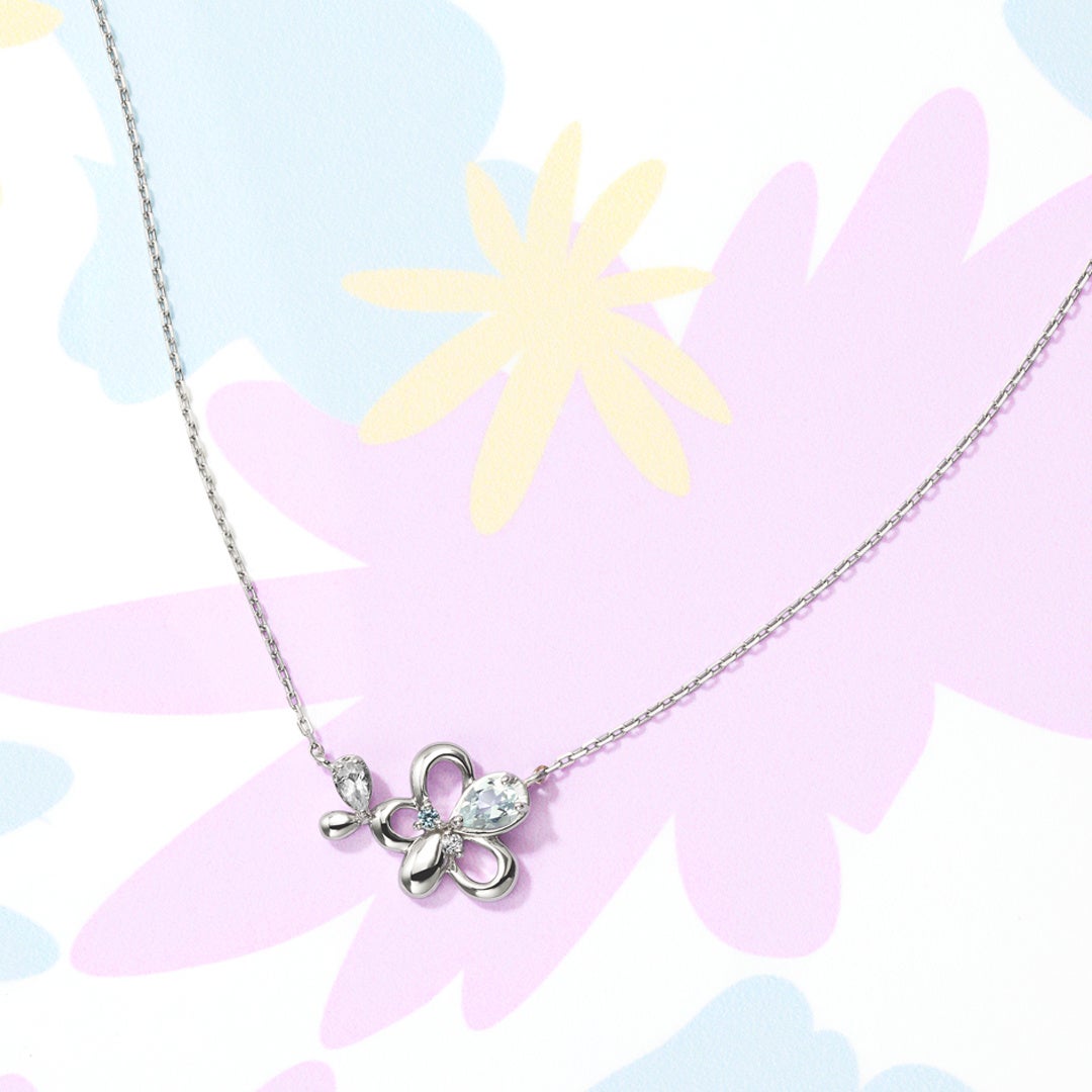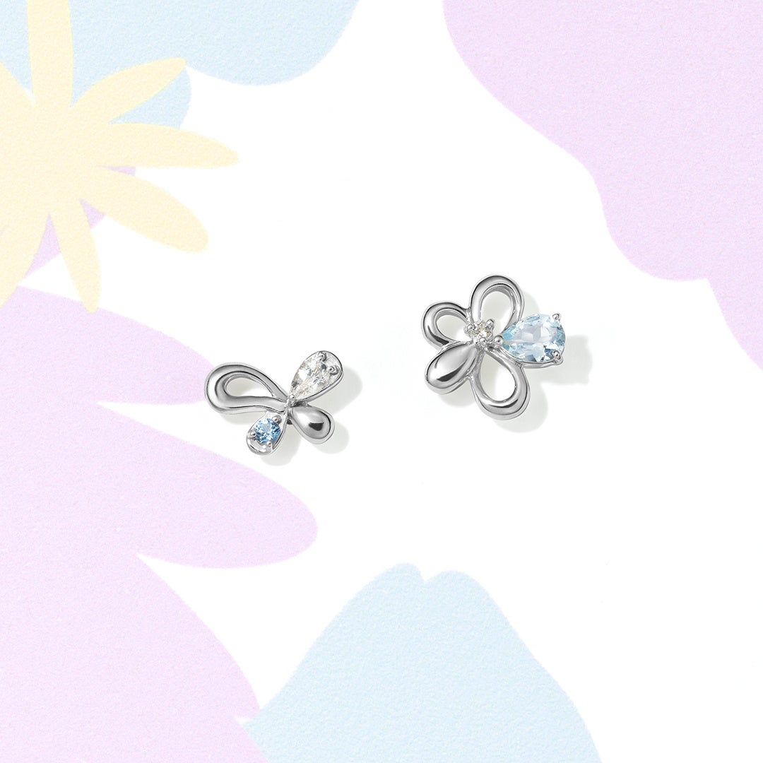 「成功」「可憐」という花言葉を持つネモフィラ。淡いブルーの花びらに蝶々が戯れる様子を、透明感溢れるアクアマリンをあしらい表現しました。ピアスはそれぞれネモフィラと蝶々を象ったアシンメトリーで、繊細に透き通るストーンが顔周りを優しく輝かせます。3月の誕生石でもあるアクアマリンをあしらっているので、誕生日を迎える大切な人へのギフトとしてもおすすめです。