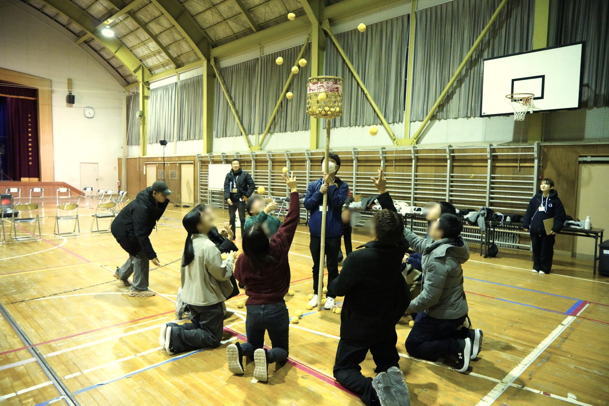 当初は緊張の面持ちだった参加者も、体育館でのフルーツバスケットや玉入れが始まると、いつのまにかハイタッチや会話が生まれて次第に打ち解けていきました。
