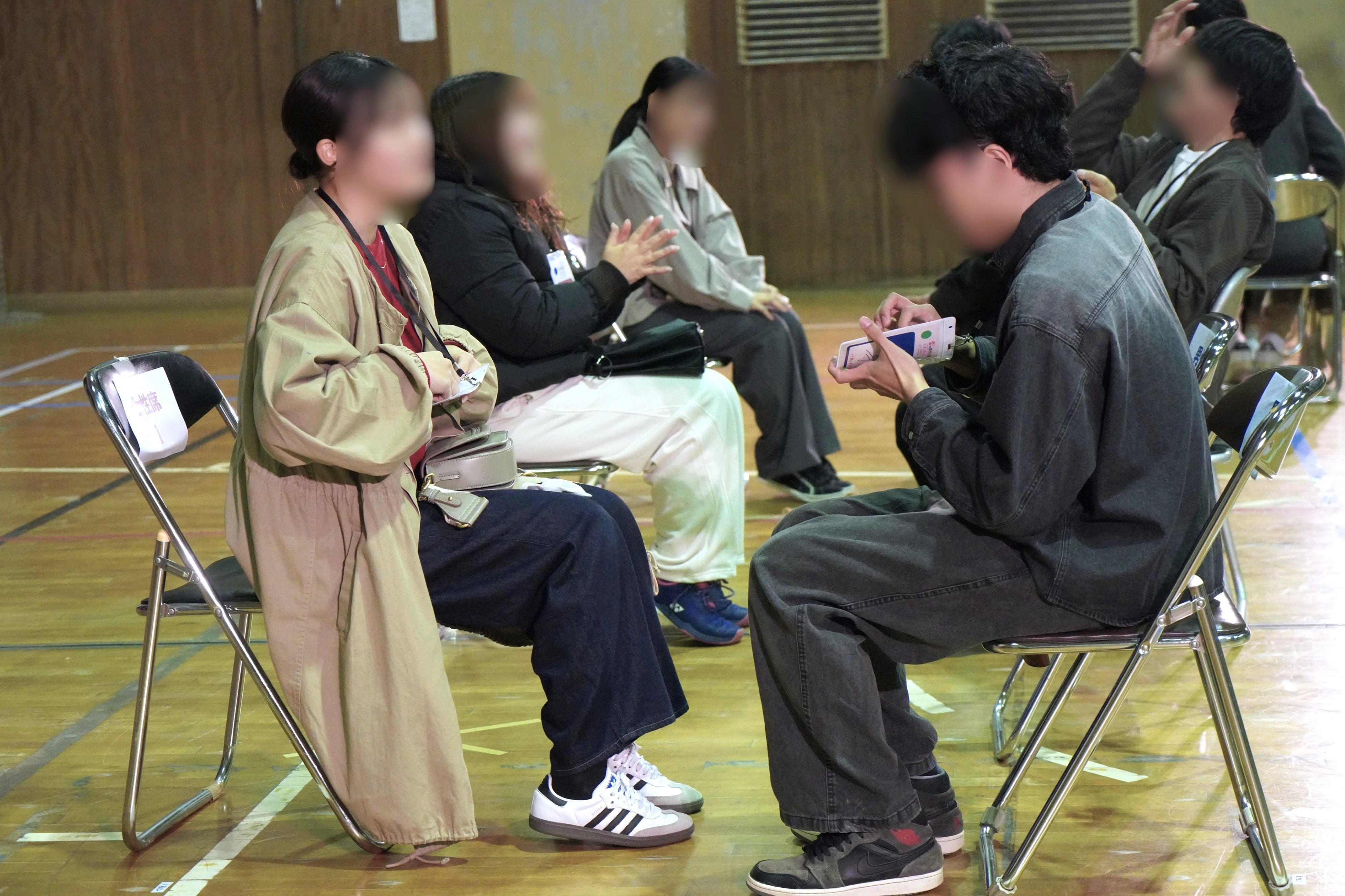 開会は、チャイムの音とともに婚活アドバイザー兼MC・荒木さんによる「起立ー、礼!」の掛け声で宣言されました。荒木さんによる男女別「婚喝!作戦会議」では、まるで本当の授業のようにマッチング成功に向けたアドバイスが行われ、参加者は生徒さながら真剣に耳を傾けていました。