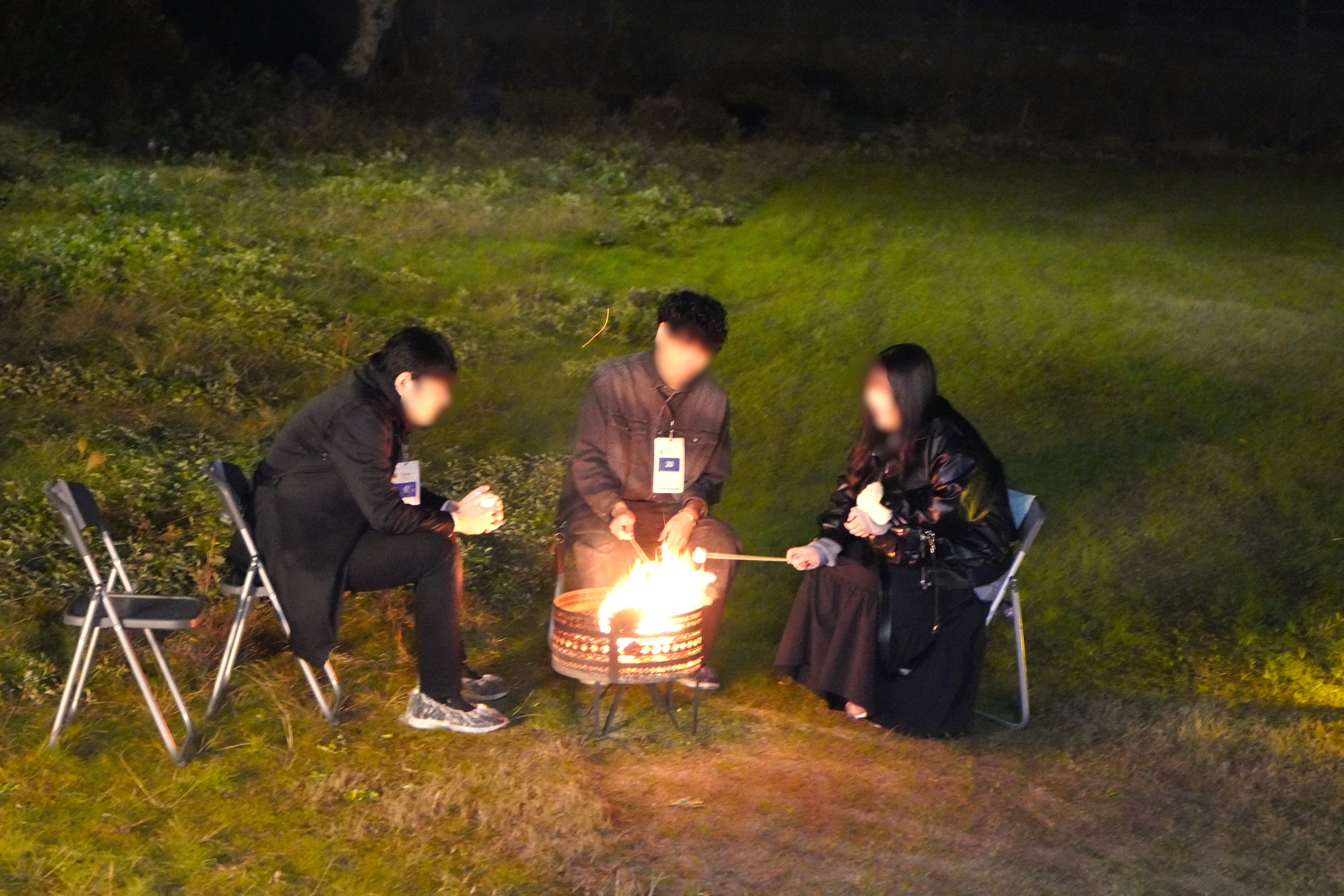 後半のフリータイムでは、男女グループで校内を回り、「雑巾掛けリレー」、「校内カフェ」、「焚き火体験」といったコンテンツを体験。まるで文化祭のような活気ある雰囲気の中、参加者たちはさらに交流を育みました。
