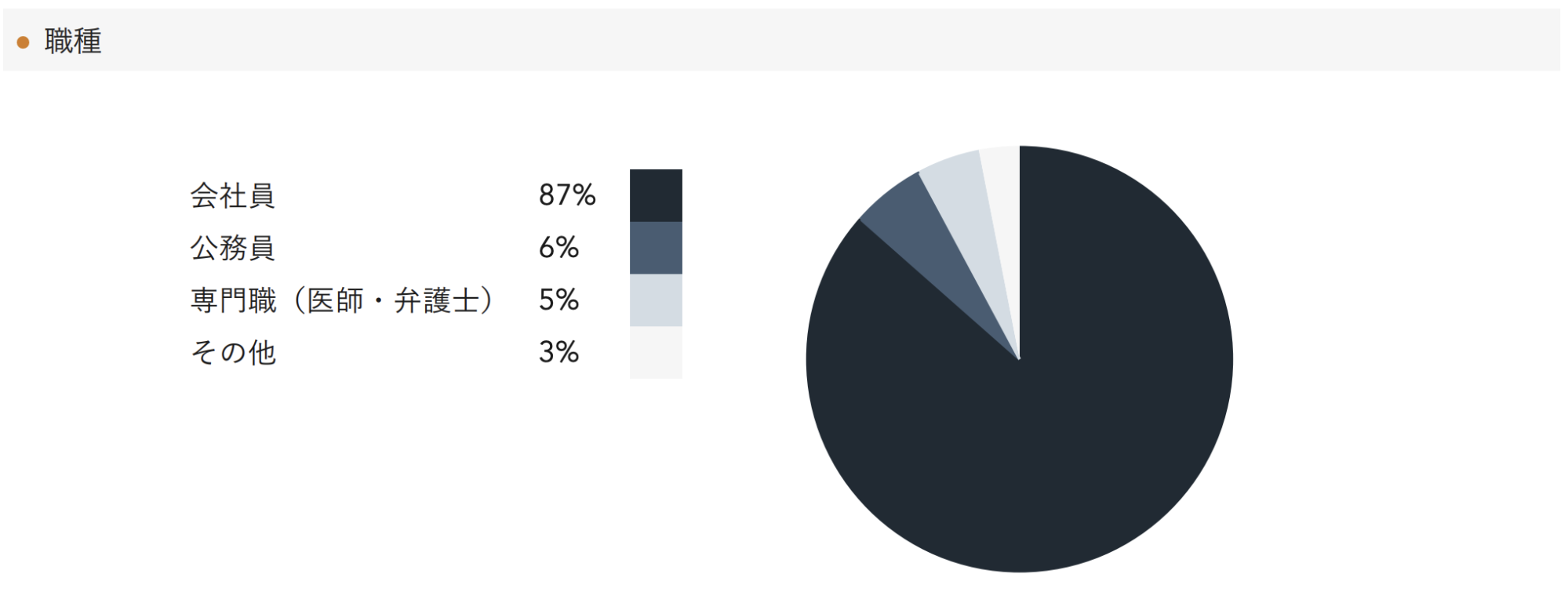 - 成約顧客の職種は、会社員が87%と高水準で推移