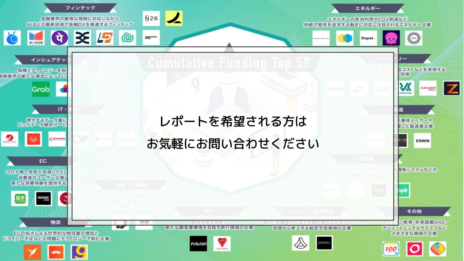 【カオスマップ付き】資金調達額トップ50 スタートアップを掲載「累計資金調達トップ50スタートアップレポート」をリリース