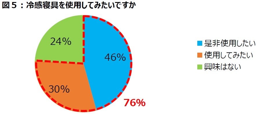 暑さで寝苦しい夜の対策として、接触冷感タイプの寝具を76%の人が使ってみたいと回答しました。
