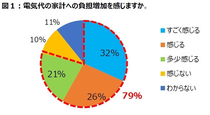 電気代の急激な上昇を受けて 家計への負担 について 聞いたところ、 79 %の人が 負担の増加を感じている