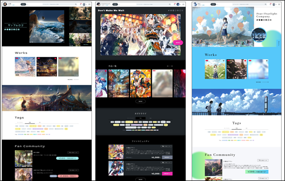 ポートフォリオ機能…自身の作品を自由度の高いページ構成で発表・公開する機能(ページ内にSHOPなども自由に配置可)