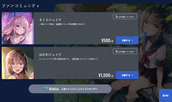 ファンコミュニティ機能…無料から月額制まで設定可能、ファンとのコミュニケーションの土台となる支援機能