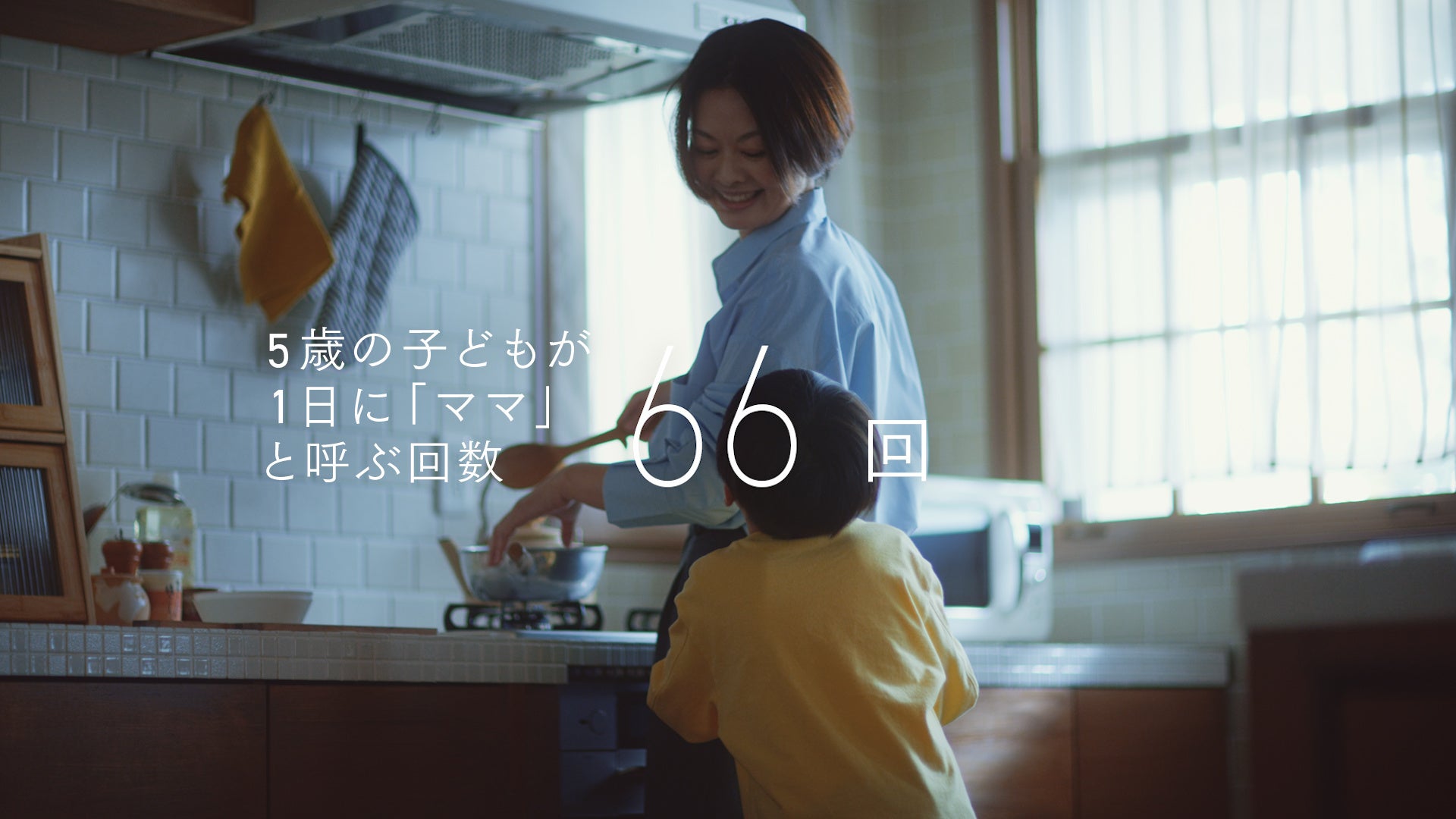 あなたは1日に何回「ママ!」と呼びますか?呼ばれますか?実は、5歳の子どもは1日に66回も呼んでいるという事実がありました。日頃当たり前に口にしている「ママ!」を呼ぶ声。成長するにつれ、移り変わるその回数を、親子のカタチや想いを繋ぐ大切な軌跡であることに着目し、メッセージムービーとして描いてみました。