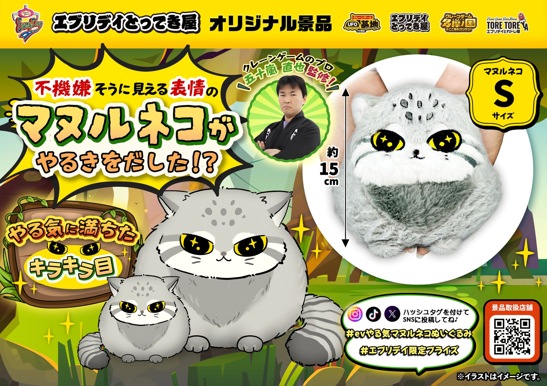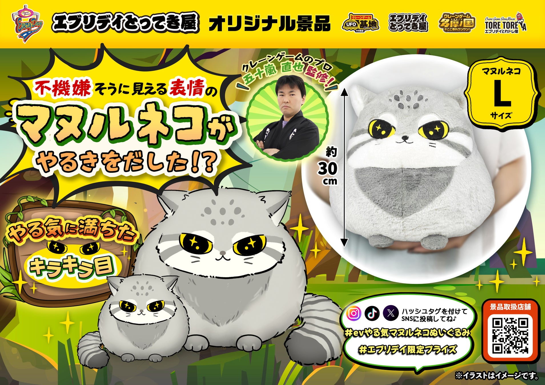 “やる気スイッチ”を感じるキラキラの瞳!愛嬌たっぷり「やる気マヌルネコぬいぐるみ」がエブリデイオリジナル景品として登場!