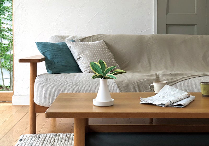 卓上を彩るグリーンがゆっくり空気にうるおいを与える、自然気化のやさしい観葉加湿器