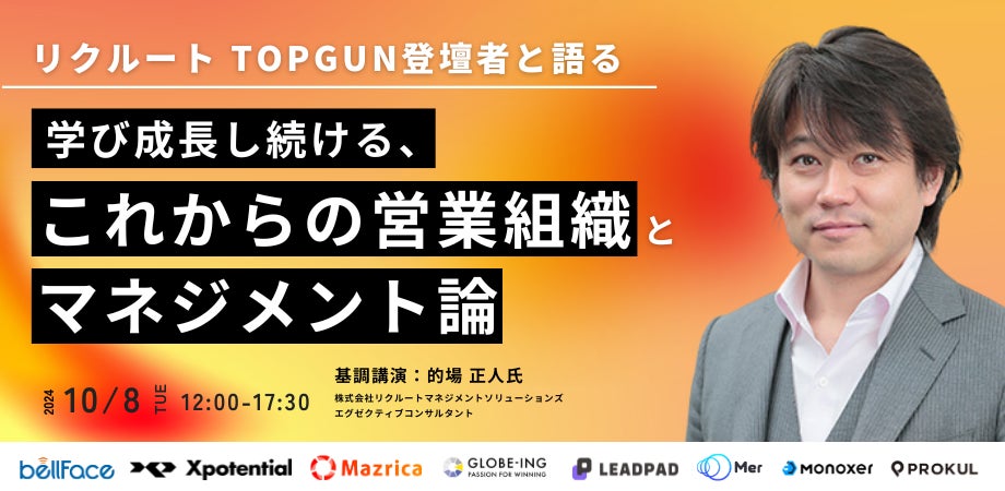 株式会社エンファクトリー(東京都千代田区、代表取締役社長CEO加藤健太、以下、弊社)は、株式会社Xpotential(東京都千代田区、代表取締役社長兼CEO山下貴宏)、株式会社マツリカ(東京都中央区、代表取締役CEO黒佐英司)、株式会社Mer(東京都渋谷区、代表取締役澤口 友彰)、グロービング株式会社(東京都港区、代表取締役社長田中耕平)、ベルフェイス株式会社(東京都港区、代表取締役中島一明)、株式会社Rockets(東京都千代田区、代表者鴻上大輔)、モノグサ株式会社(東京都千代田区、代表取締役 CEO竹内孝太朗)とともに、2024年10月8日(火)12:00から『学び成長する、これからの営業組織とマネジメント論』を開催します。(イベントページ:https://pro.prokul.jp/20241008?k3ad=pk)