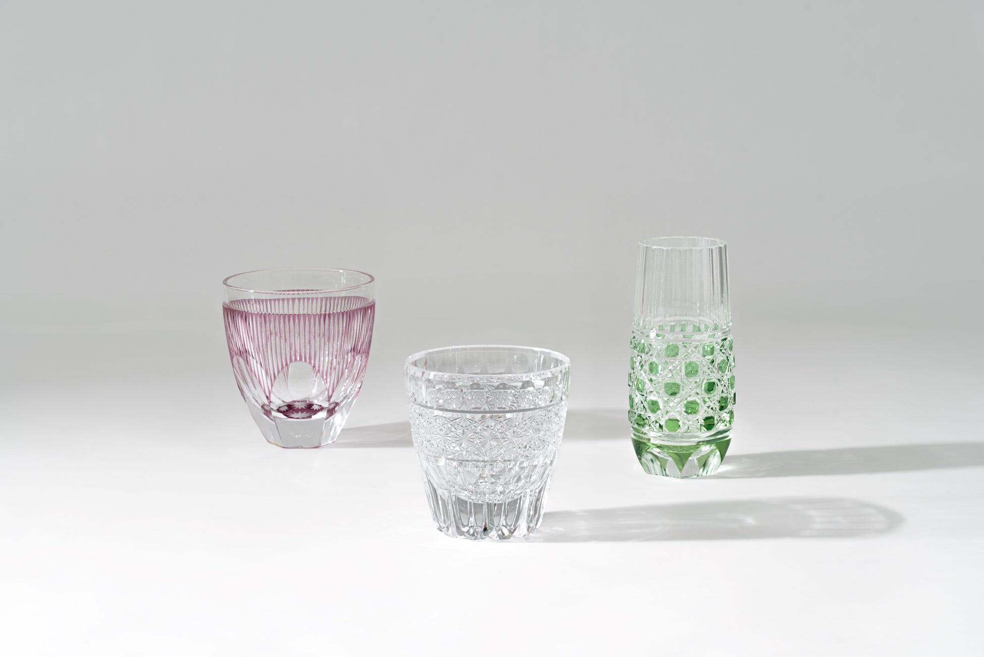 本展では、古典的な江戸切子紋様と繊細なカットを得意とする瀧澤利夫氏、瀧澤氏に師事し、大胆且つ精緻な技法で新しい切子カットの表現に挑戦する高野秀德氏、昨年伝統工芸士に認定された若手作家の青山弥生氏の3名の個性豊かな作家による、「時」をテーマにした作品をご用意しました。長い歴史の中で進化し続ける江戸切子の世界を、ぜひこの機会にご覧ください。