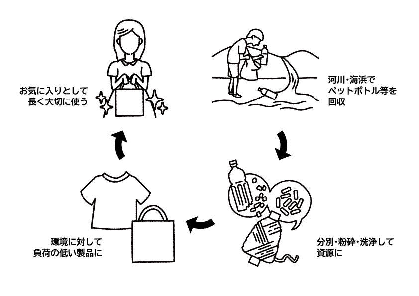今後もUpDRIFT®は様々な方と連携をしながら、海洋/漂着ペットボトルから生まれた繊維が新しいアイテムへと生まれ変わっていくことを通して、環境問題を考えるきっかけに、そして循環の輪が未来に拡がっていくことを願っています。
