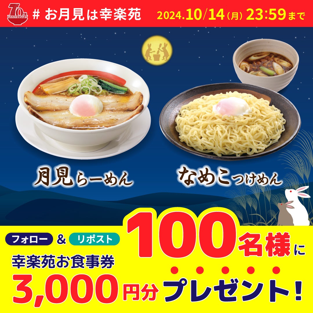 株式会社幸楽苑ホールディングス(本社:福島県郡山市)が運営する「幸楽苑」は、2024年9月22日に創業70年を迎えます。これを記念した第四弾のX(旧Twitter)キャンペーンを9月17日から開催いたします。