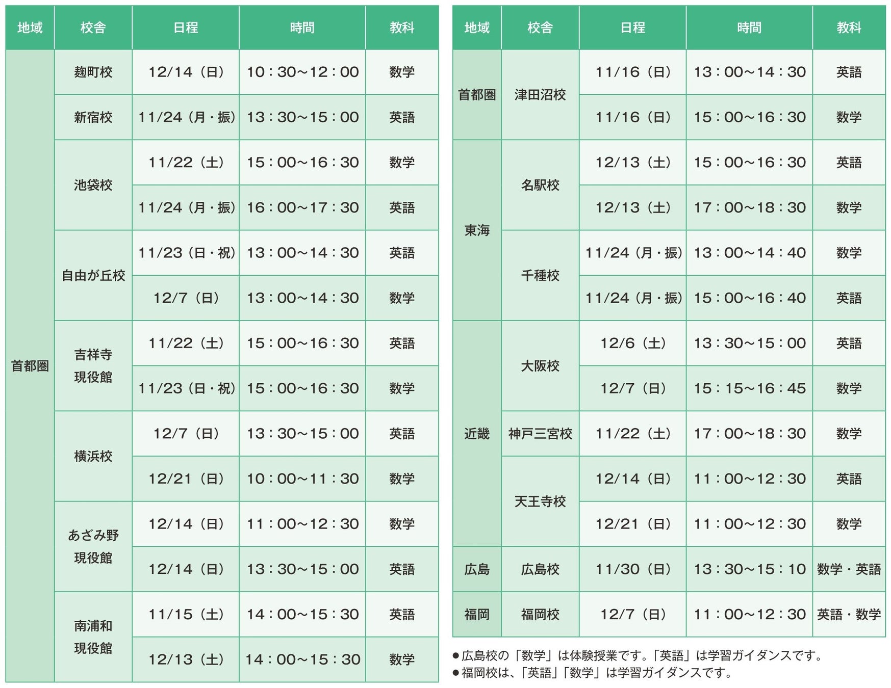 ※一部の校舎では、実施内容が異なる場合があります。詳細は申し込みサイトから該当校舎イベント詳細をご参照ください。