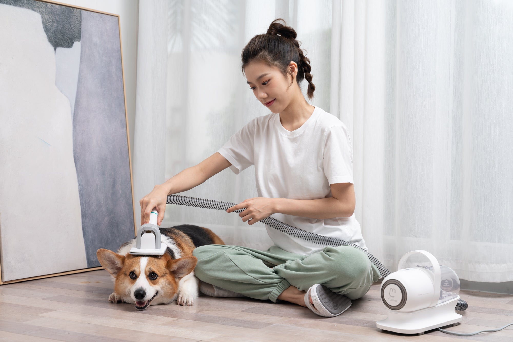 プロのトリマーが使⽤するグルーミングツー ルを⾃宅で体験することができます。米国、日本で40万人以上の方に使われていたグルーミングセットをさらに改良しました。収納付きとなっており、5種類のアタッチメントを本体にすっきり収納することができます。飼い主さん自身が簡単に自宅で愛犬や愛猫の被毛や皮膚ケアを行うことができます。作動時の音も大きな機械音でなく、優しい音です。