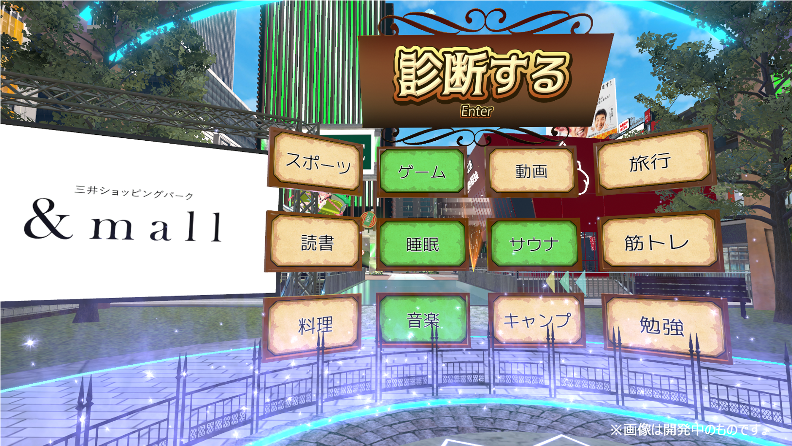 スマホやパソコンから、URLをクリックするだけで手軽にアクセスすることができるWebブラウザ会場もございます。本会場でも同じように抽選機を回すとクーポンが手に入ります。気軽に遊びやすい会場で、三井不動産のブースをお楽しみください(「ジョブ診断」はVR会場限定となっております)。