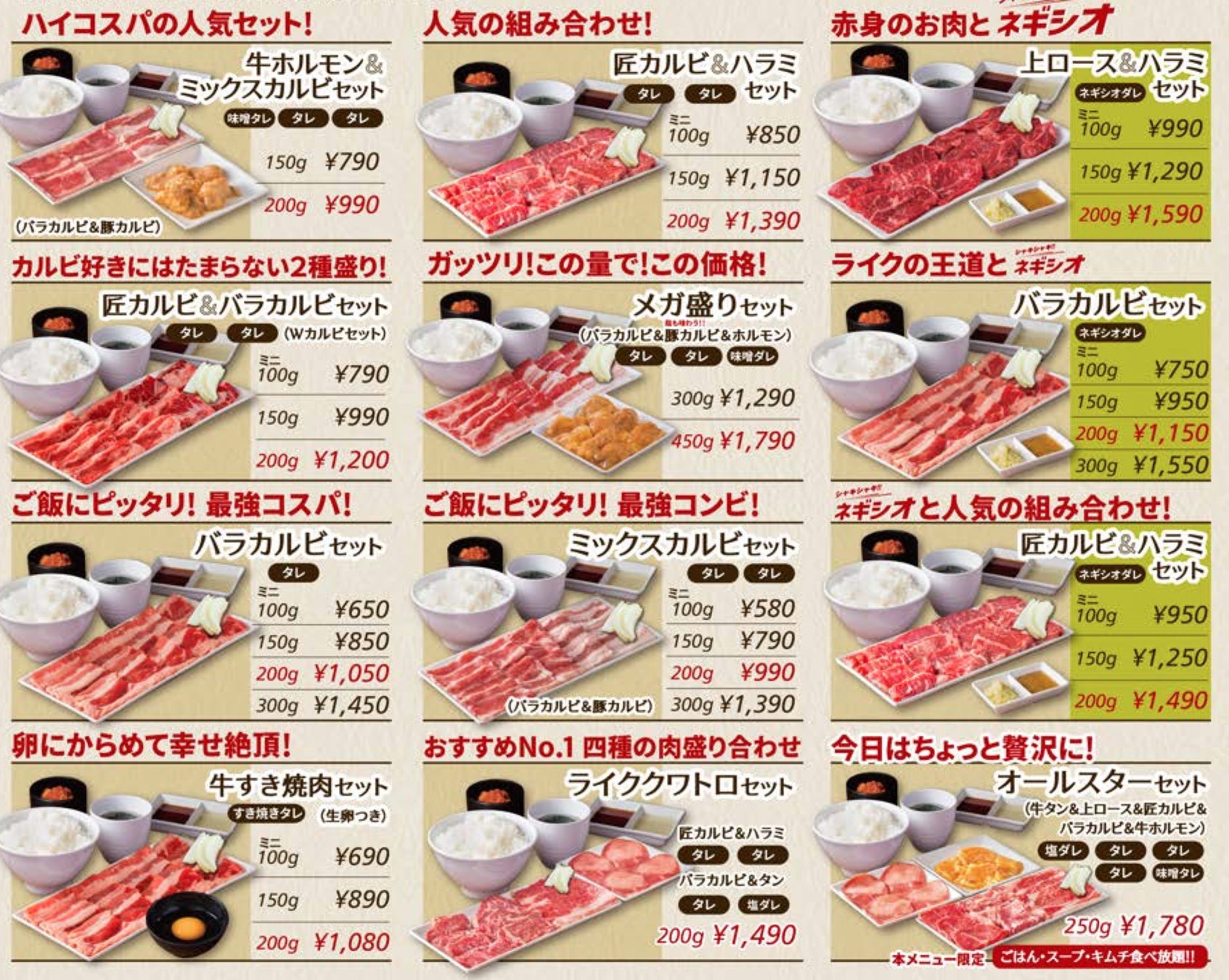 - メニュー(一部抜粋)焼肉セット580円から!