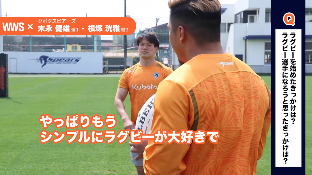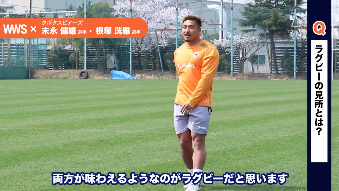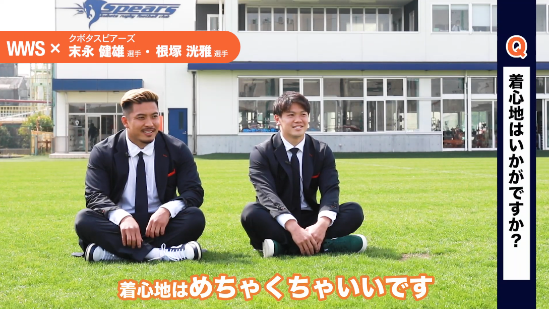 また、クボタスピアーズ船橋・東京ベイが、今年開幕したジャパンラグビーリーグワンの初回王者を決定するプレーオフに出場することを記念して、若手注目選手である末永健雄選手と根塚洸雅選手の独占インタビュー動画をWWS公式YOUTUBEチャンネルにて公開いたします。ラグビーへの想いやリーグワンへの意気込みなど選手としての一面だけではなく、子供のころのお話や洋服の好みなどプライベートな一面も垣間見えるインタビューとなっています。