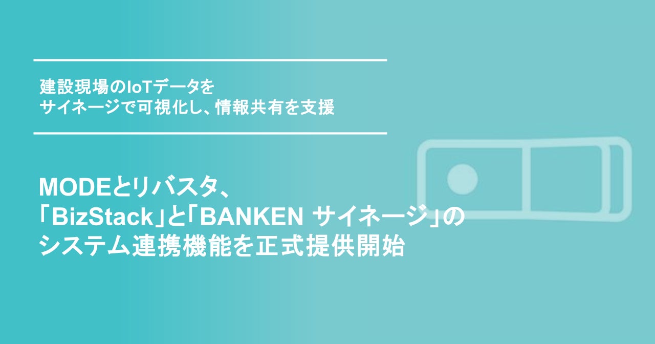現場データの活用を支援するシリコンバレー発スタートアップMODE, Inc.(本社:米国カリフォルニア州、日本支店:東京都千代田区、CEO:上田 学、以下 MODE)と株式会社リバスタ(本社:東京都江東区、代表取締役:高橋巧、以下 リバスタ)は、MODEが提供する「BizStack(ビズスタック)」と、リバスタが提供する建設現場ICT機器ソリューション「BANKEN(バンケン)」のデジタルサイネージ「BANKEN サイネージ」のシステム連携機能(以下 本機能)を、2026年4月20日より正式に提供開始しました。(※1)