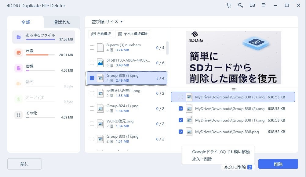 Googleドライブの重複ファイルを削除する-4DDiG Duplicate File Deleter