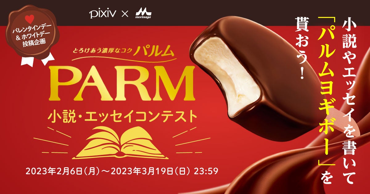 ピクシブ株式会社(本社:東京都渋谷区、代表取締役:國枝 信吾、以下ピクシブ)が運営するイラスト、マンガ、小説作品の投稿コミュニケーションプラットフォーム「pixiv」は、森永乳業株式会社が展開する、口どけの良いコーティングとなめらかなアイスが同時にとろけ合う大人のための上質なアイス「PARM(パルム)」とコラボレーションし、2023年2月6日(月)より 、pixiv×森永乳業「パルム小説・エッセイコンテスト」を開催します。