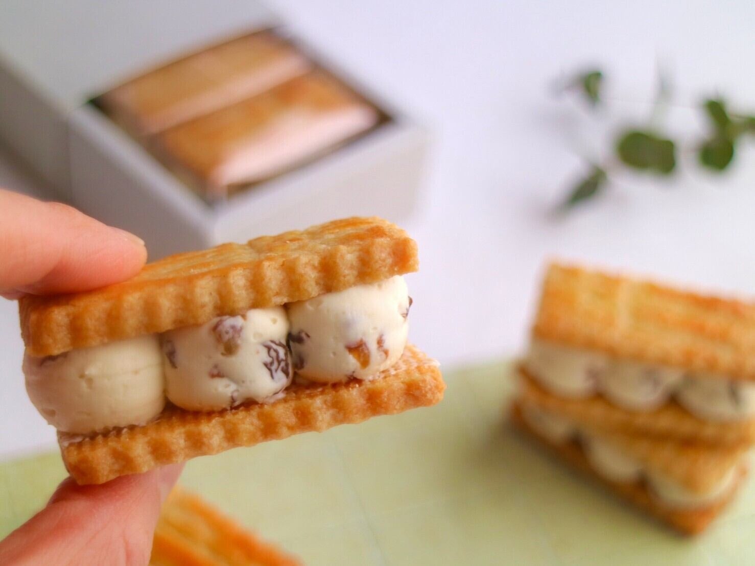 芳醇なダークラムと発酵バターを贅沢に使用した、極上のラムレーズンサンド。
