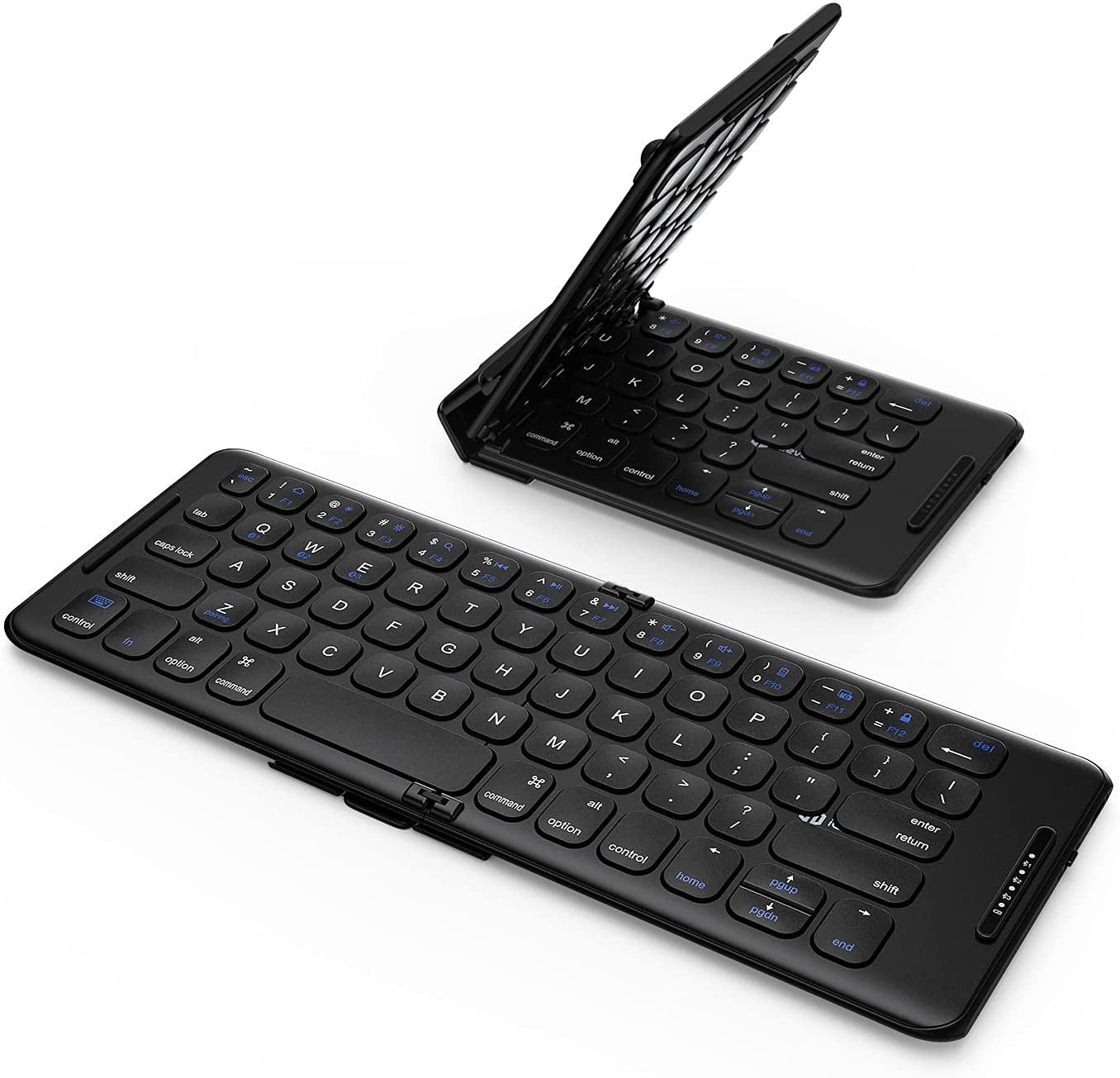 3台までマルチペアリングが可能なBluetoothキーボードです。付属のスタンドにスマートフォンやタブレットを立てかければ、ノートパソコンのように作業できます。折りたたみ式デザインで軽量かつコンパクトのため、営業先への持ち運びにも便利です。