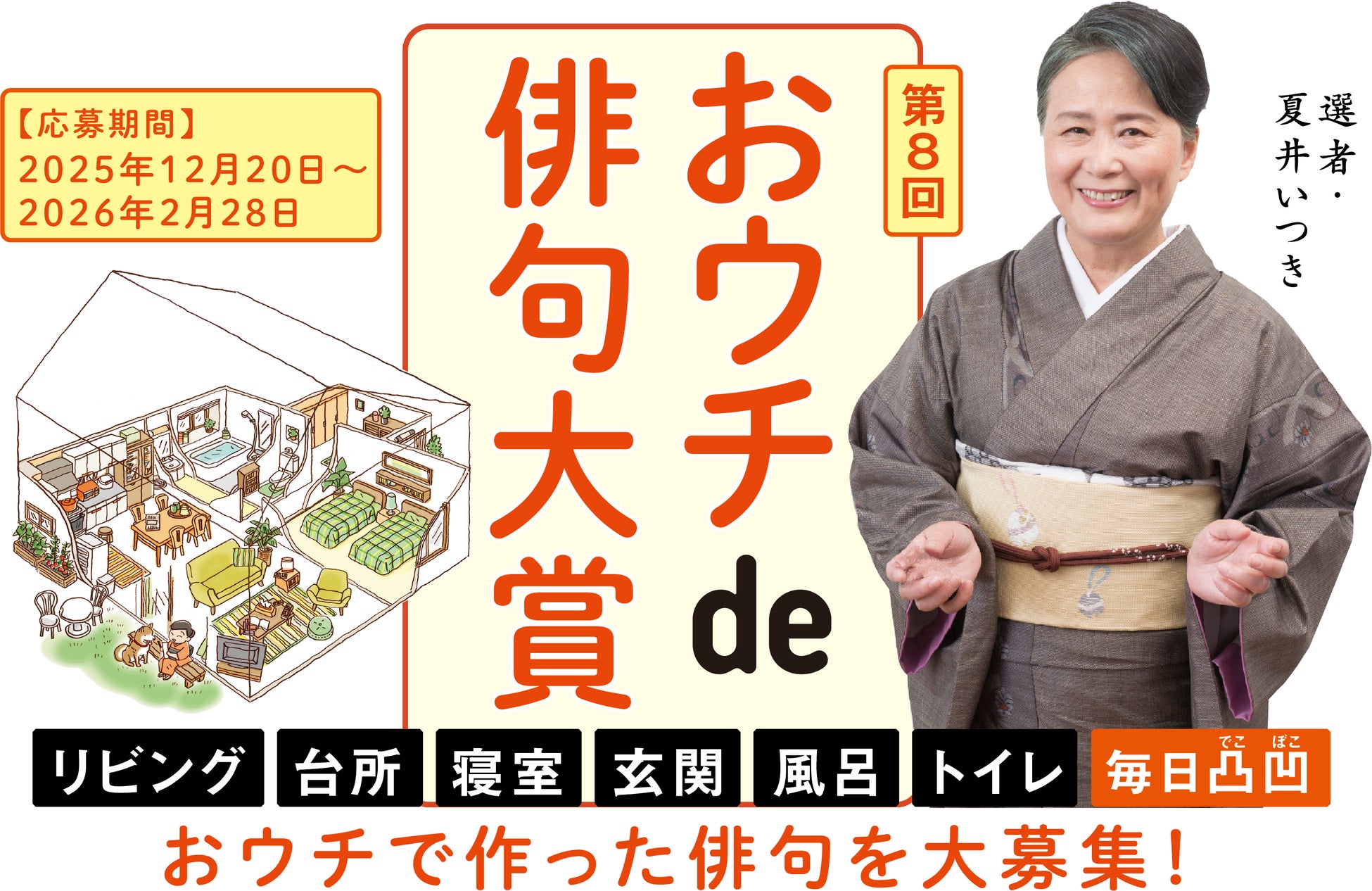 株式会社朝日出版社は、2026年2月28日(土)まで、『プレバト!!』でおなじみの俳人・夏井いつき氏が選者を務める、第8回「おウチde俳句大賞」の作品を募集しています。