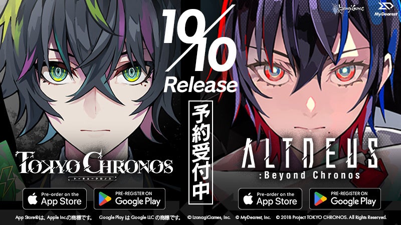 株式会社イザナギゲームズ(東京都江東区、プロデューサー兼CEO:梅田慎介)と、MyDearest株式会社(東京都中央区、代表取締役CEO:岸上健人)は、『東京クロノス』と『アルトデウス: ビヨンドクロノス』のiOS版とAndroid版を10月10日(木)にリリースすることを発表いたしました。本日より先行予約を受け付けております。