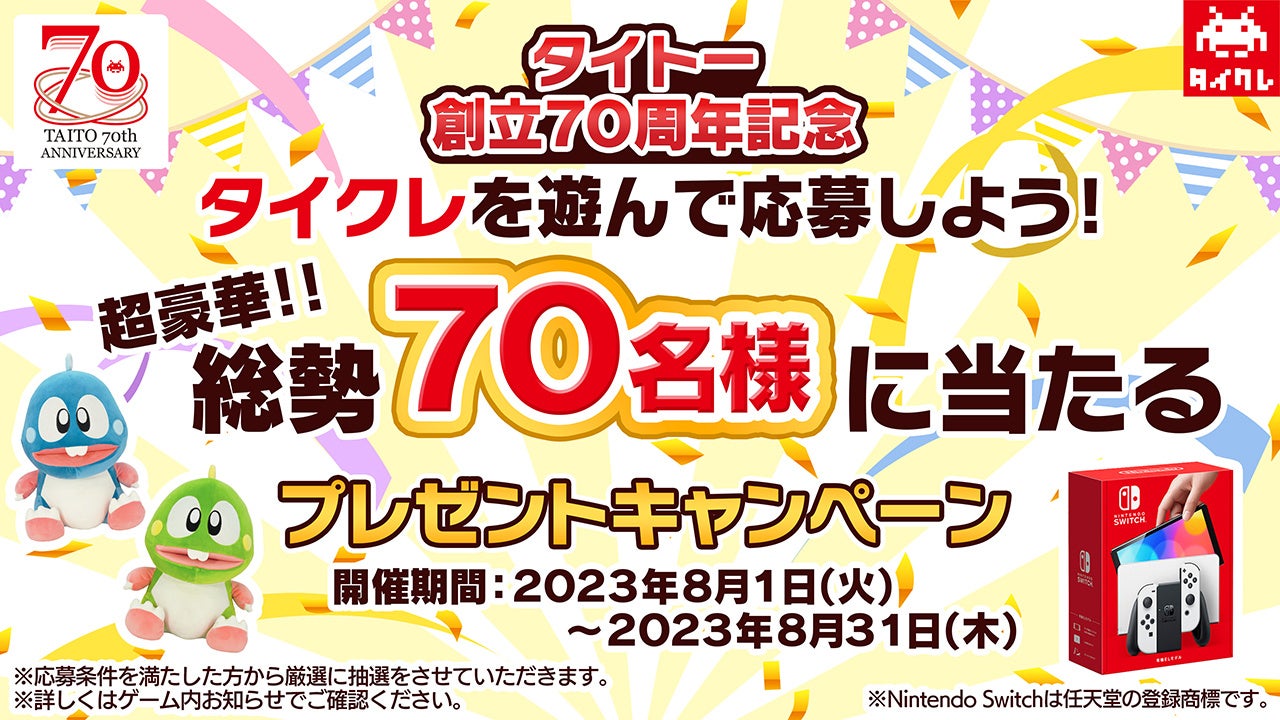 8月1日よりタイクレにて『タイトー70周年記念キャンペーン』開催!