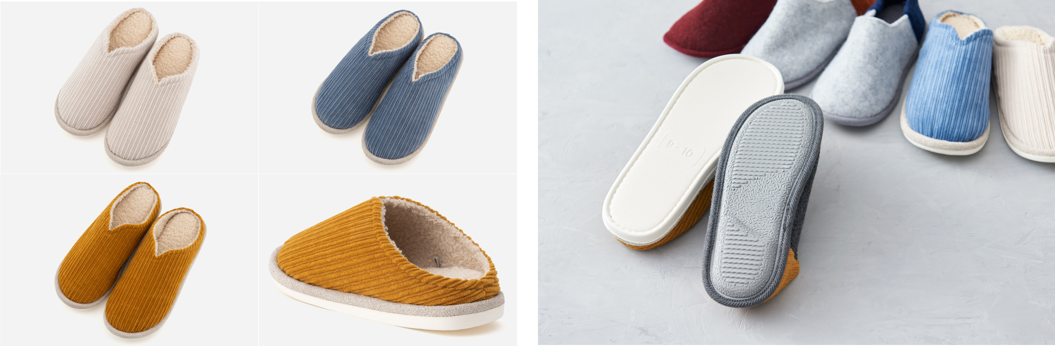 前作に引き続き、今回の新作でも見た目のデザイン性はもちろん、機能性も重視し、3種類のスリッパを開発。床に水滴などが飛び散るキッチンでも濡れないアイテムや、冷えを取ってくれるブーツタイプまで、おうち時間のさまざまなストレスに応えた、ありそうでなかった機能が付いたスリッパです。