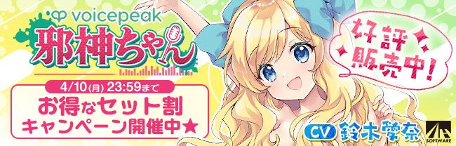 3月30日に発売したばかりの、大人気アニメ「邪神ちゃんドロップキック」でCVを務める声優・鈴木愛奈の声を元に製作した、「邪神ちゃん」を喋らせることが可能な入力文字読み上げソフト『VOICEPEAK 邪神ちゃん』も対象となっています。