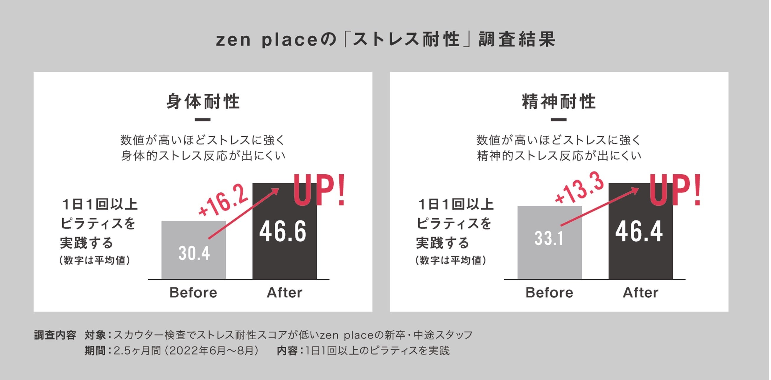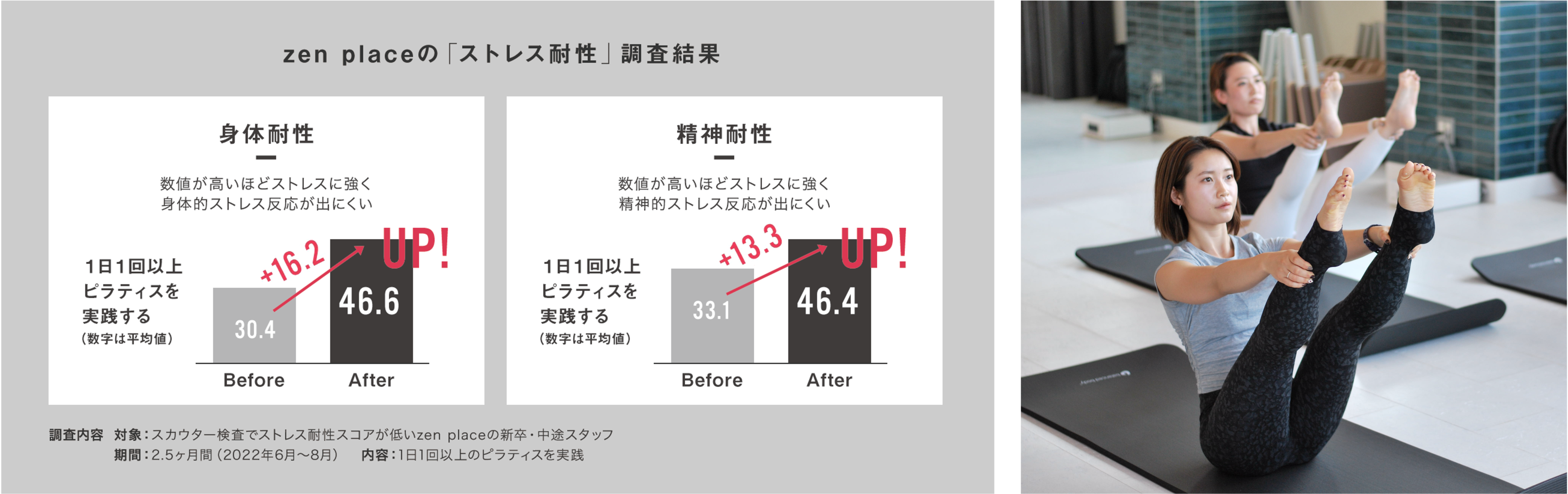 1日1回以上ピラティスを行う実践者の「身体耐性」・「精神耐性」スコアに大きな改善を確認 ーウェルビーイングをつくるピラティス・ヨガ専門スタジオのzen place メンタルヘルスデー企画第1弾ー