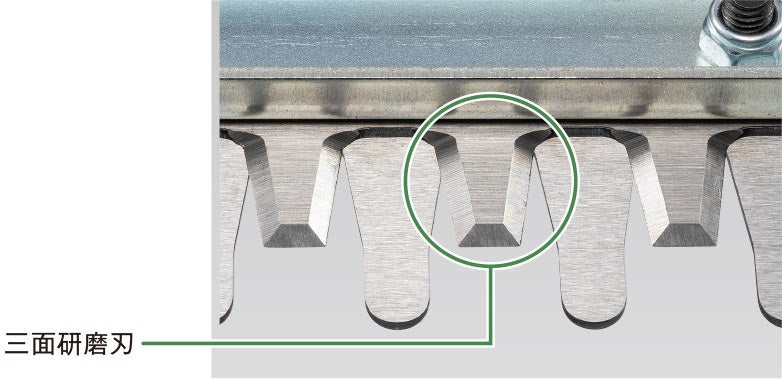 切れ味抜群の三面研磨刃採用でキレイに刈込めます。