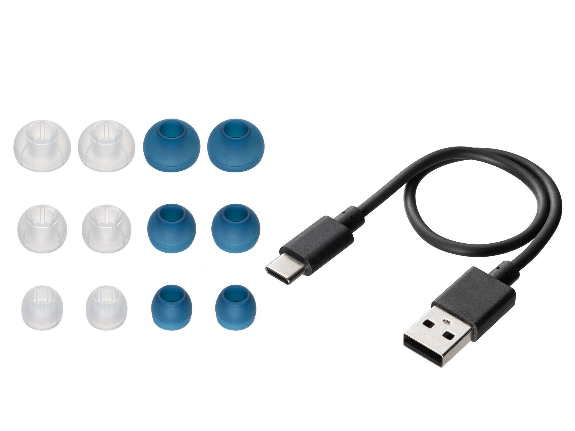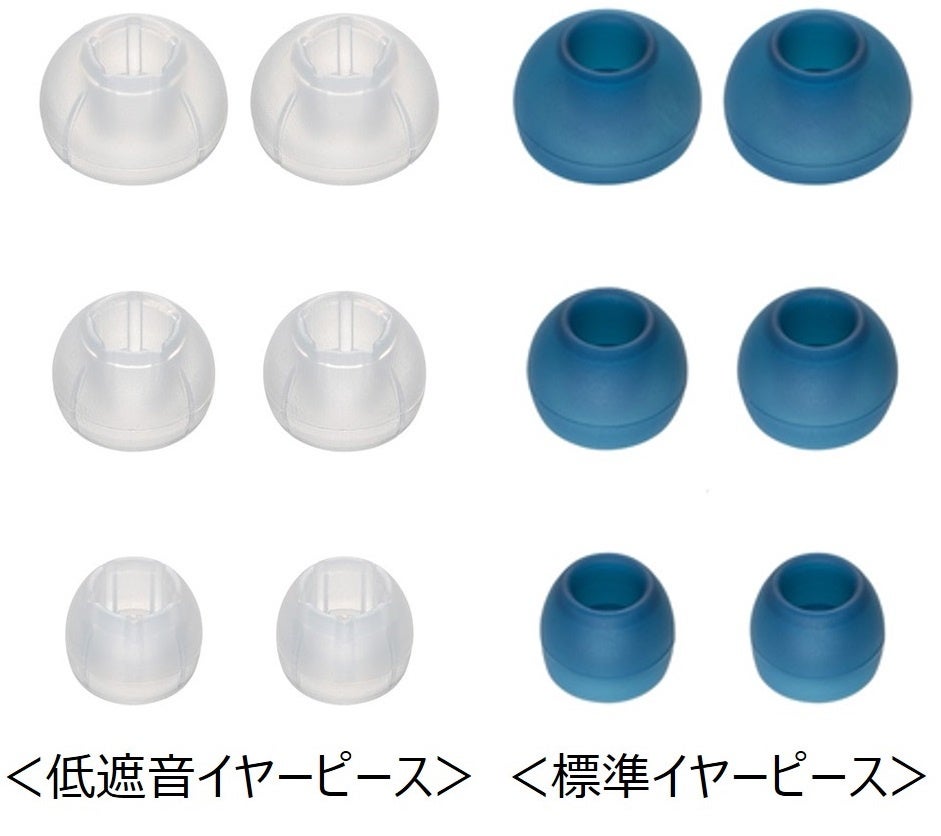 遮音性に優れた標準イヤーピースに加え、ジョギングなど屋外で使用する際の安全性に配慮し、周囲の音が聞こえやすい低遮音イヤーピースも付属(各3サイズ)。テレワーク時などのオンライン会議で通話に使用の際も、周囲の音が聞き取りやすく便利です。