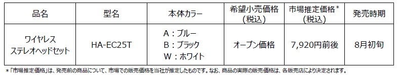 株式会社JVCケンウッドは、Victorブランドより、フックタイプの完全ワイヤレスイヤホンの新ラインアップとして、「HA-EC25T」を8月初旬より発売します。