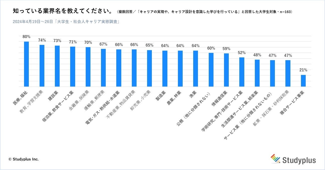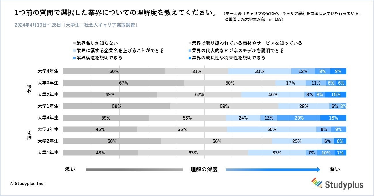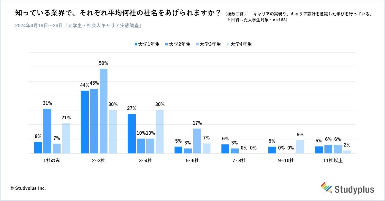キャリアを見据えた学びを行っている大学生、業界に対する理解度は企業名を2~3社あげることができる程度