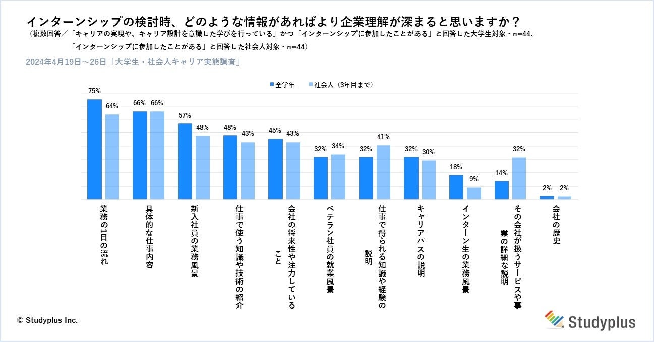 ・インターンシップの検討時、どのような情報があればより企業理解が深まると思いますか? ※社会人1~3年目のユーザーとも比較