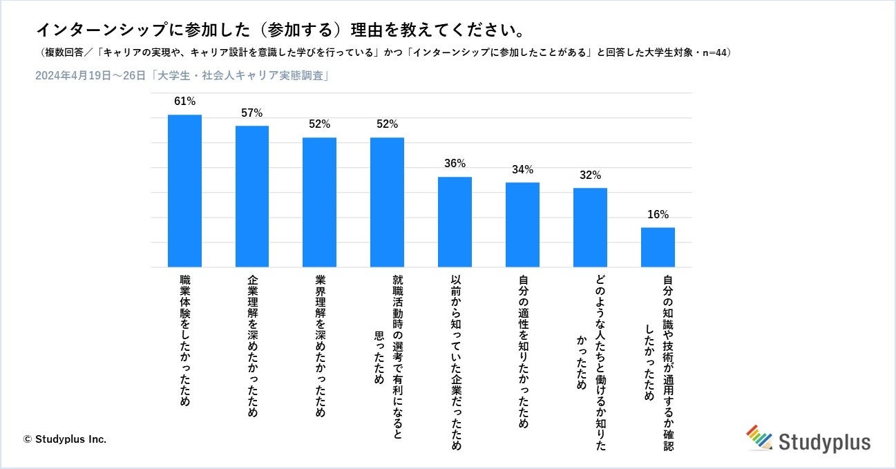 ・「職場体験」「企業理解」「業界理解」「選考で有利」が理由の上位に。
