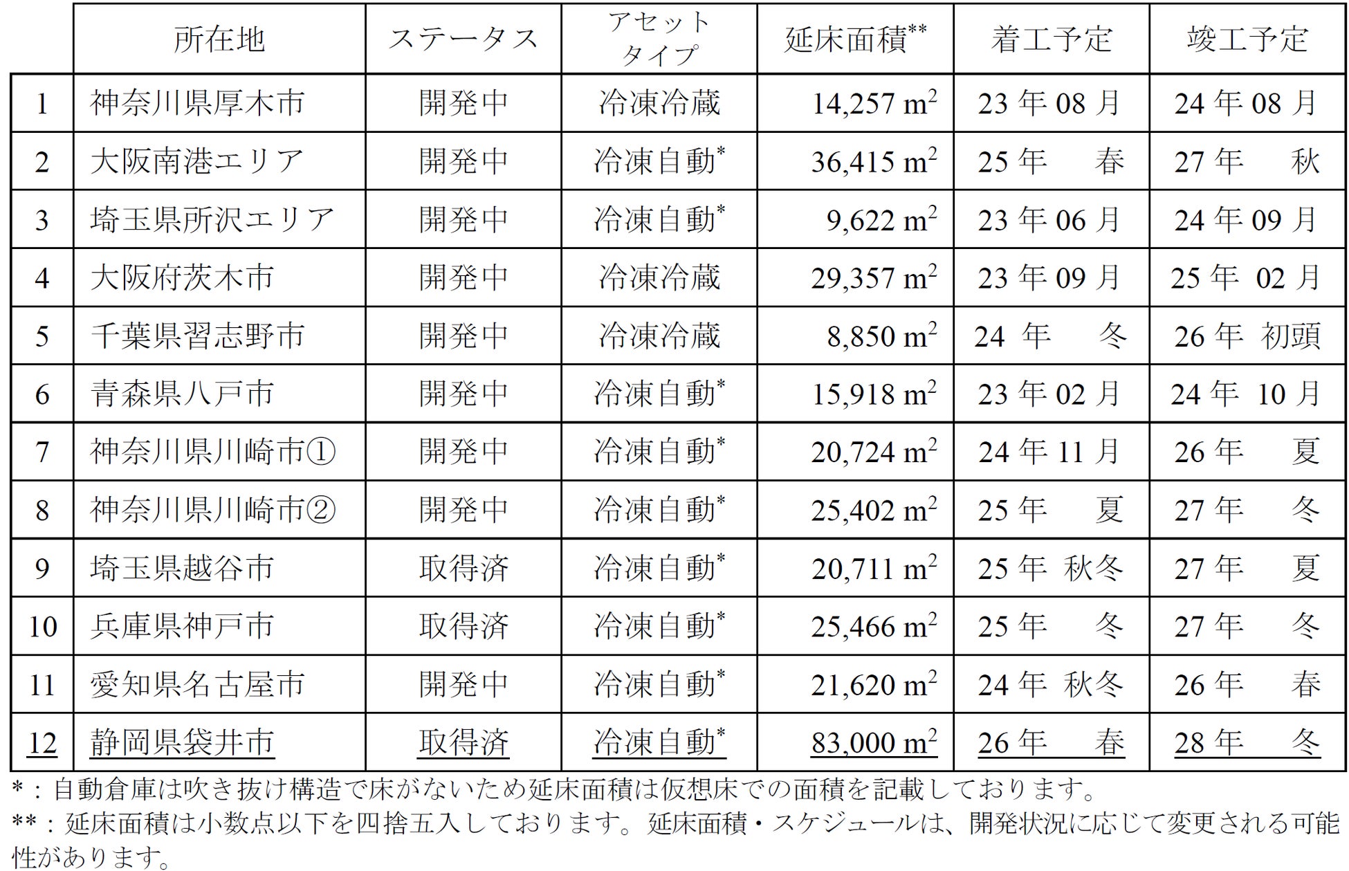 ■霞ヶ関キャピタル物流施設開発予定物件一覧