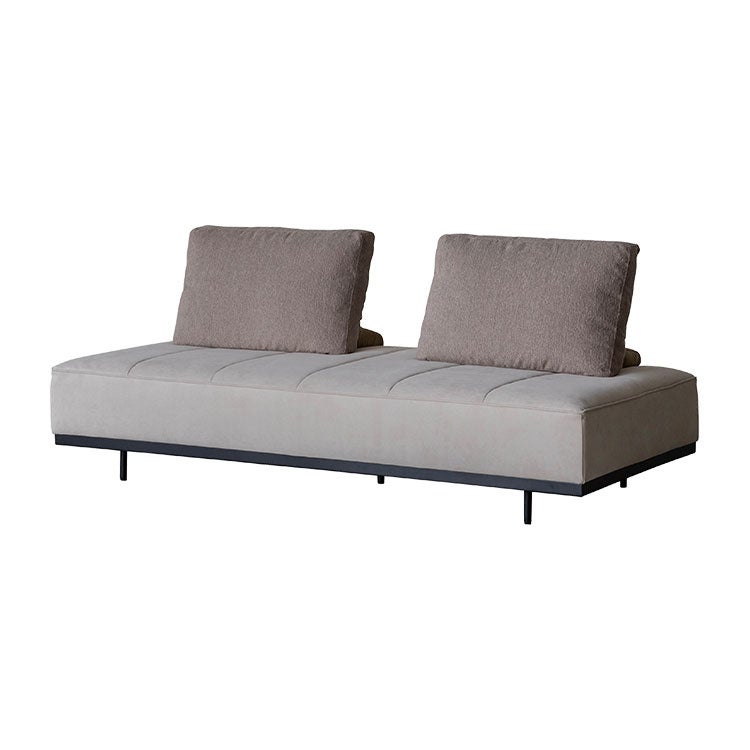 グローソファは、ベンチタイプのソファに置き型の背クッションを組み合わせたモダンなスタイルが特徴です。背クッションの配置次第で、横向きに足を伸ばしてリラックスしたり、ご家族やご友人と向かい合って会話を楽しんだり、広々としたデイベッドとしてご活用いただいたりとお使いになる方のライフスタイルに寄り添う自由度の高さが魅力となっています。