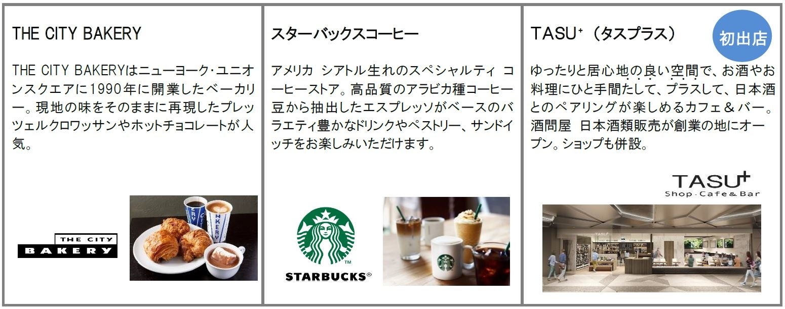 地下1階から地上3階に誕生する商業施設のうち、先行オープンする地下1階は、周辺オフィスの就業者のみならず、来街者や国内外観光客、バスターミナルのご利用者にも親和性の高い、便利で多彩な軽飲食店を中心に13店舗をとりそろえました。